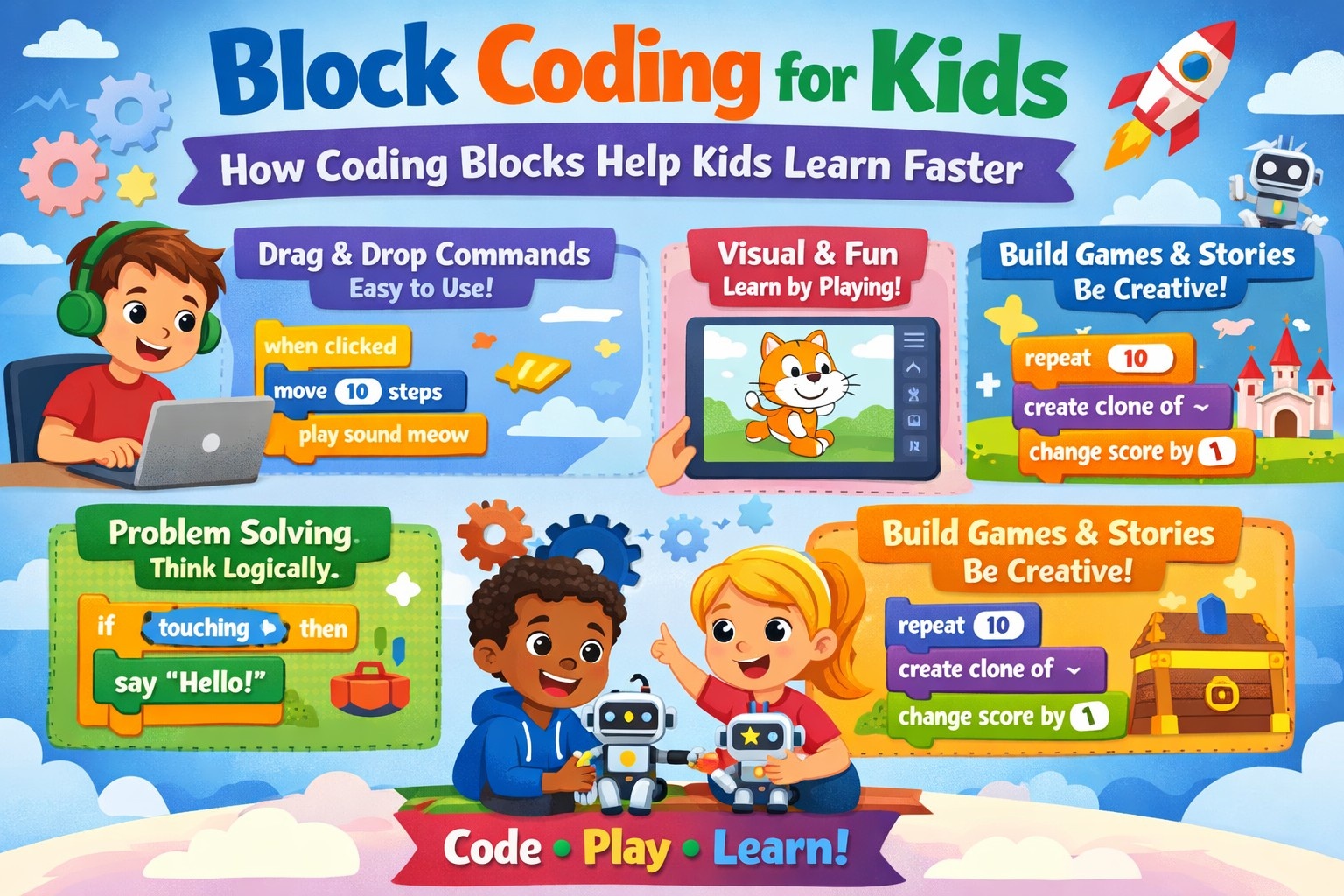 Block Coding Explained How Coding Blocks Help Beginners Learn Faster Block Coding vs. Text Coding Coding Blocks in Scratch (The Most Common Starting Point) What Students Can Build with Block Coding Quick Project Menu Popular Block Coding Tools for Kids Final Thoughts Ready to Start Building? Frequently Asked Questions