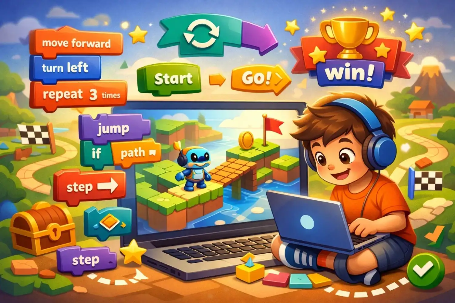 If the character moves in the wrong direction or does not complete the challenge, children can quickly spot the mistake and try again. This instant feedback makes learning more interactive and helps kids improve faster through trial and error.