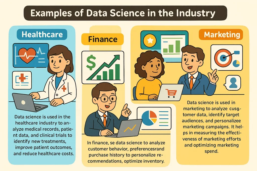 - Healthcare: Data science is used in the healthcare industry to analyze medical records, patient data, and clinical trials to identify new treatments, improve patient outcomes, and reduce healthcare costs.