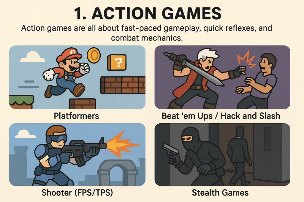 Action games are all about fast-paced gameplay, quick reflexes, and combat mechanics.